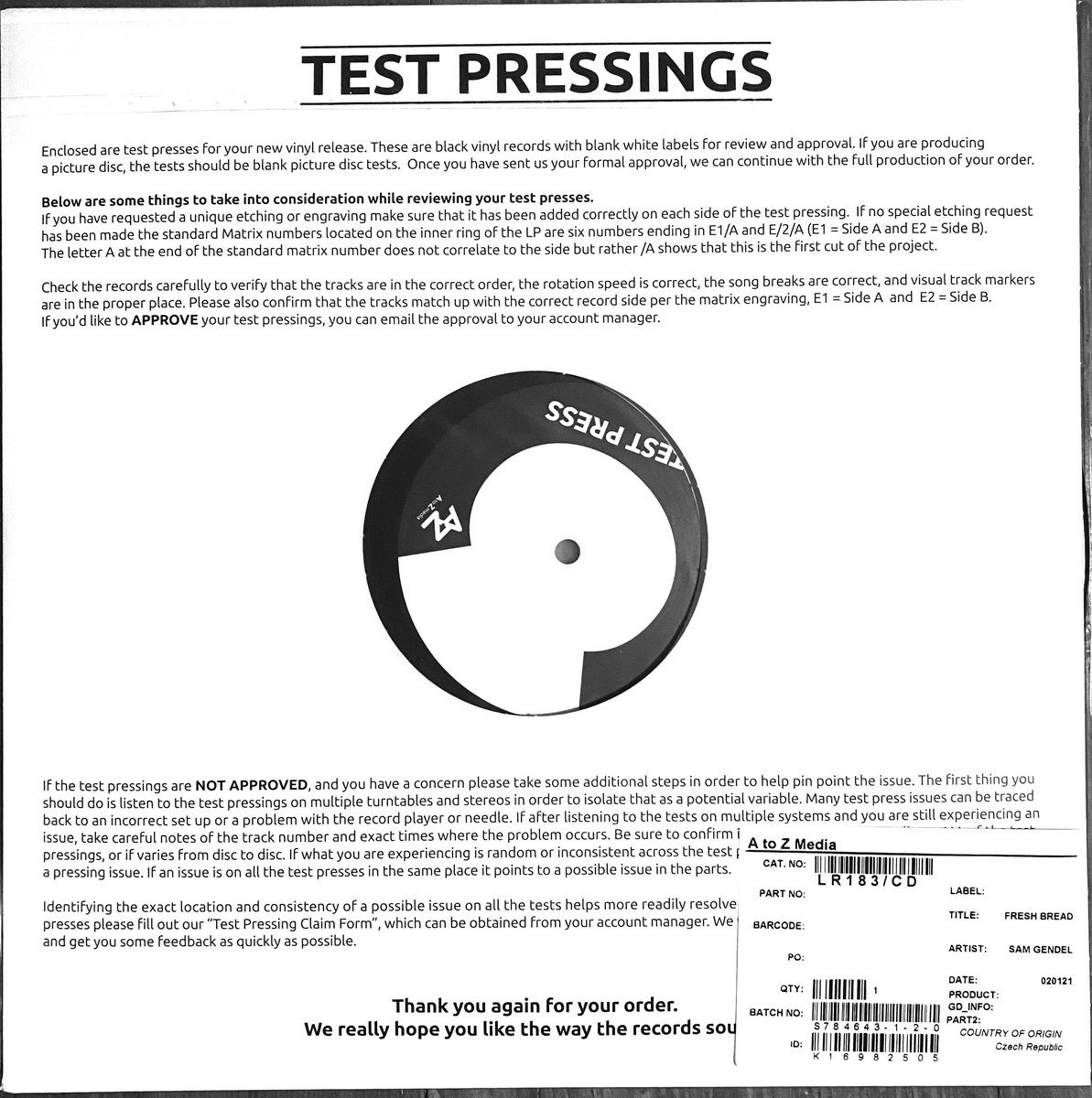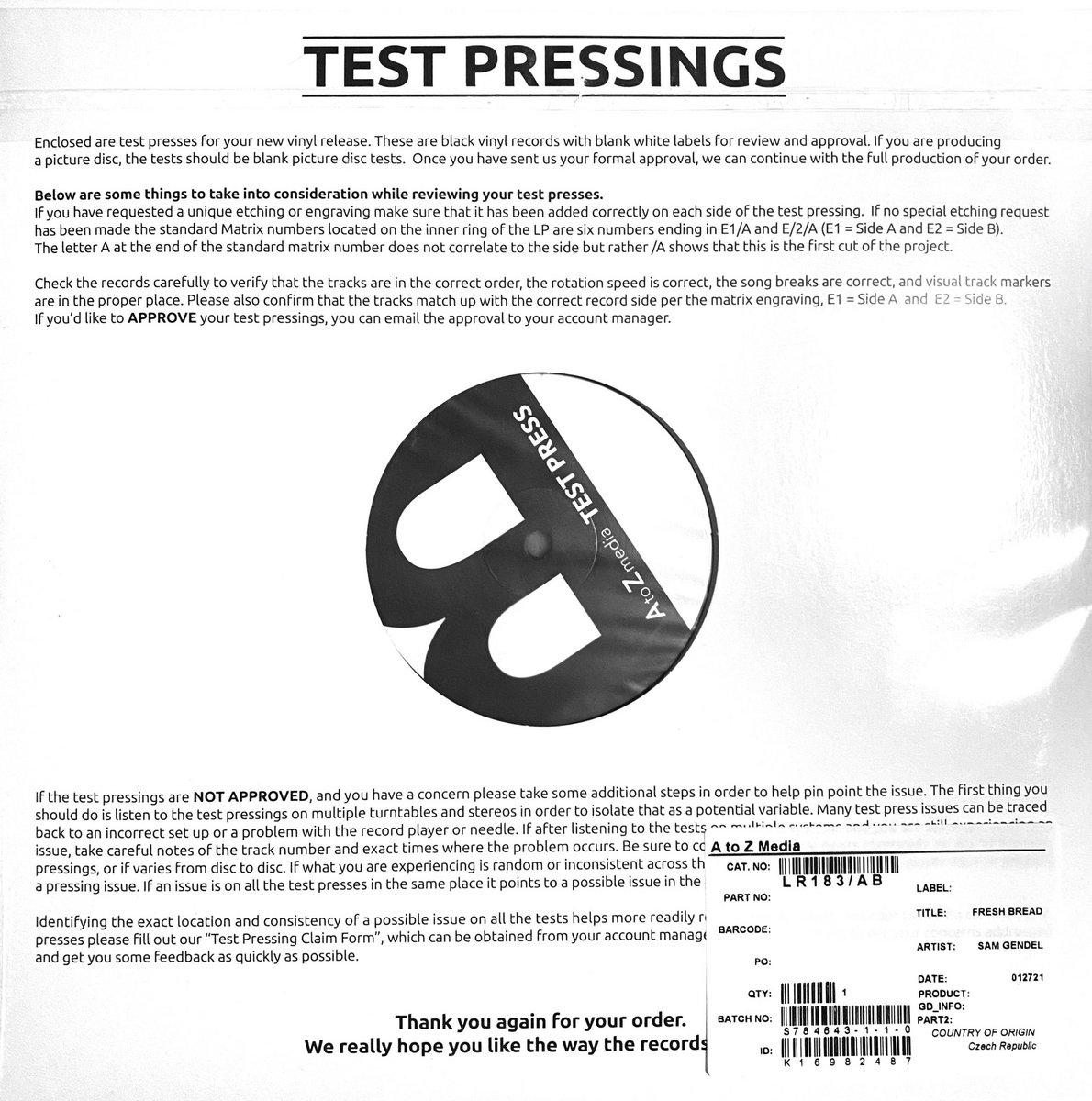 *includes two digital prints of Fresh Bread photo ephemera: a portrait collage from Marcella Cytrynowicz, and a shot of Sam's gear in the warehouse where he recorded "Eternal Loop" and others.